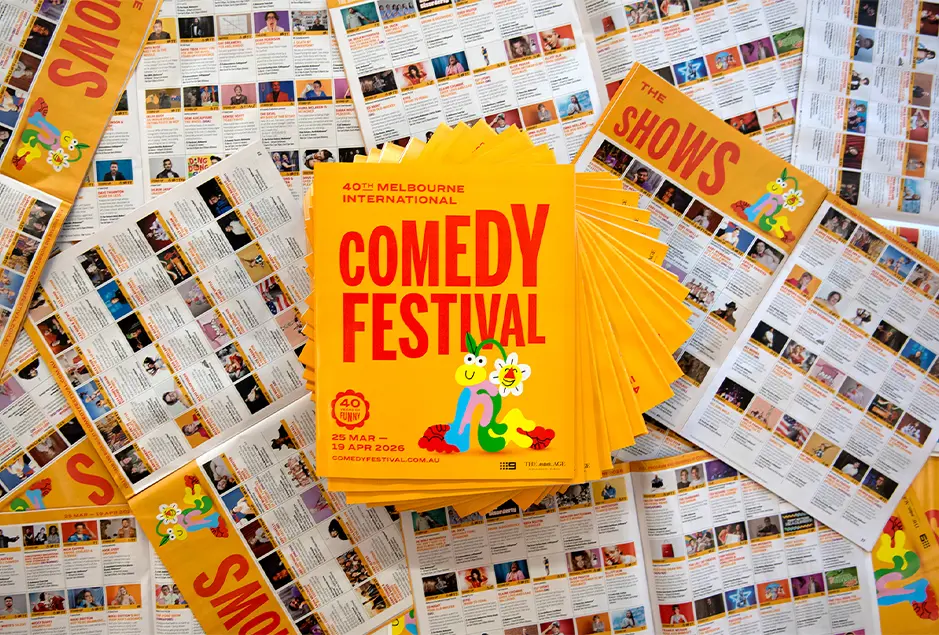 Order a copy of the 2026 Melbourne International Comedy Festival Program Guide – delivered straight to your door.